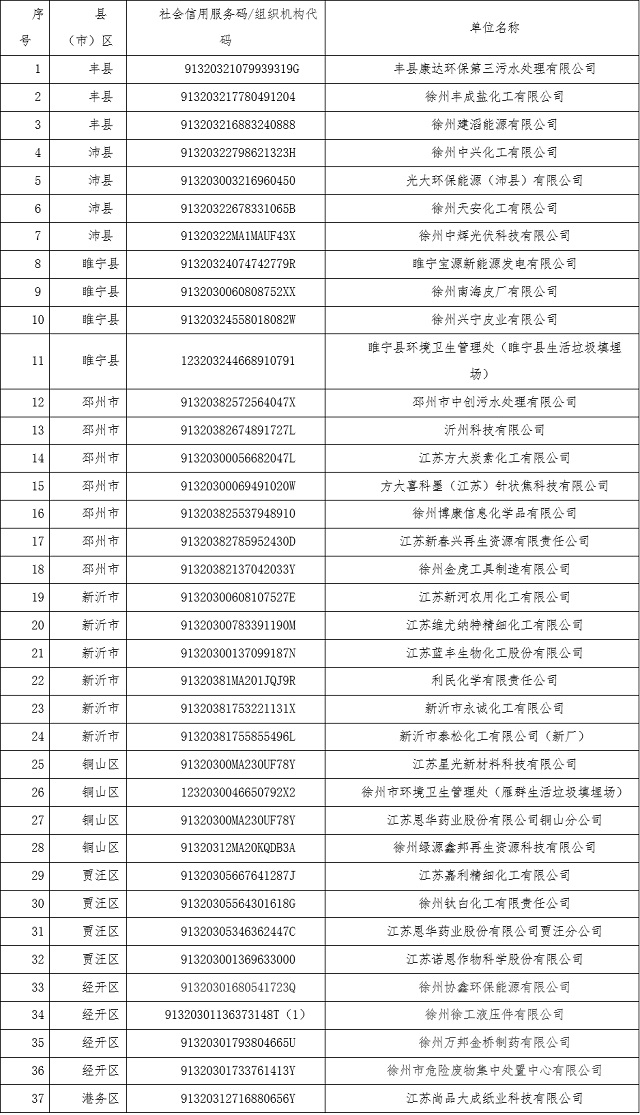 徐州市公布2022年地下水污染防治重點(diǎn)排污單位名錄,共有37家企事業(yè)單位。