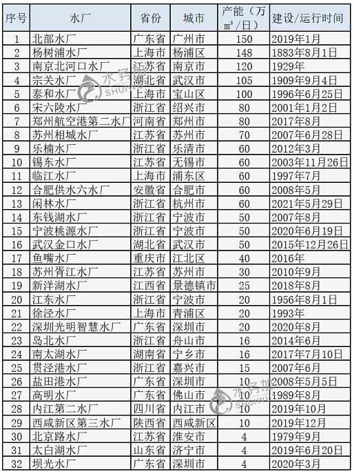 水務加®對國內近10年新建或升級的智慧水廠進行了盤點,共32家,主要分布在華東地區、中南地區和西南地區,一起來看看吧!(水廠按產能排序)