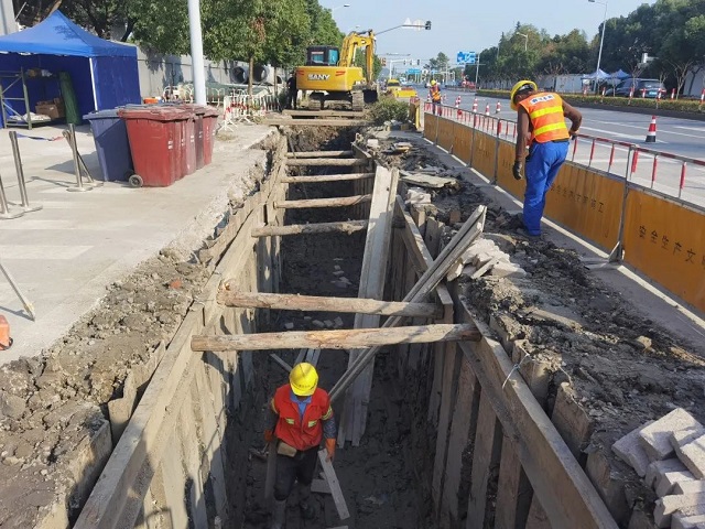 在外青松公路千新公路至油墩港路段,積水點改造項目進入到排水管道鋪設和雨水井施工的收尾工作。據該項目負責人介紹,以往每逢暴雨期間,外青松公路、千新公路交叉口積水嚴重,對周邊人員正常出行造成很大的影響。為徹底解決積水問題,在外青松公路道路新建雙排管口直徑為1000毫米雨水管道,自千新公路西側起排,收集道路路面及兩側地塊雨水后排入油墩港,減輕片區的排水壓力,解決困擾周邊居民已久的內澇問題。“之前的排水系統年代久,管道積淤情況嚴重,而且這邊道路地勢比較低,非常容易積水。這次改造施工主要以大口徑的管道的排設為主,在非機動車道上增設進水井,在雨量大的時候可以及時水排走,達到解決積水問題的效果?!狈e水點改造項目經理張源說。