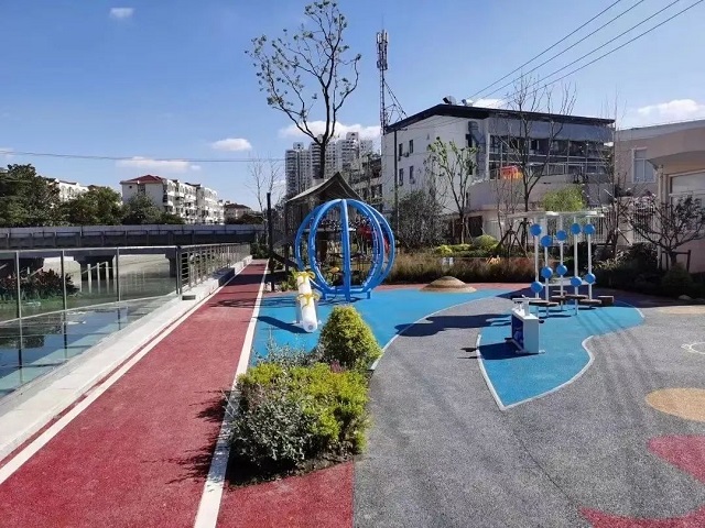東安公園位于中山南二路811號(hào),北臨內(nèi)環(huán)高架中山南二路,是一座以竹為主的江南庭院式公園,也是周邊居民主要的健身活動(dòng)場(chǎng)所。公園改造后,不少前來鍛煉的老人發(fā)現(xiàn)路面采用深水材料鋪平了,即使是下雨天也不怕打滑,對(duì)老年人十分友好。同時(shí),基于海綿城市的設(shè)計(jì)理念,特別對(duì)整個(gè)水體的自凈能力做了提升,比如在水底增加了苦茶類等水生態(tài)比較好的一些植物,提升整個(gè)水體的自凈能力。