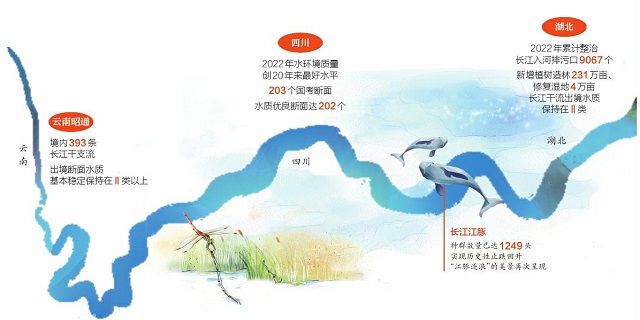 “2022年,湖北省繼續(xù)把修復(fù)長(zhǎng)江生態(tài)環(huán)境擺在壓倒性位置,協(xié)同推進(jìn)降碳、減污、擴(kuò)綠、增長(zhǎng)。長(zhǎng)江保護(hù)修復(fù)提檔升級(jí)。”亢德芝列出數(shù)據(jù),深入實(shí)施長(zhǎng)江高水平保護(hù)十大攻堅(jiān)提升行動(dòng),累計(jì)整治長(zhǎng)江入河排污口9067個(gè),新增植樹造林231萬畝、濕地修復(fù)4萬畝,長(zhǎng)江干流出境水質(zhì)保持在Ⅱ類,“江豚逐浪”的美景再次呈現(xiàn)在世人面前。