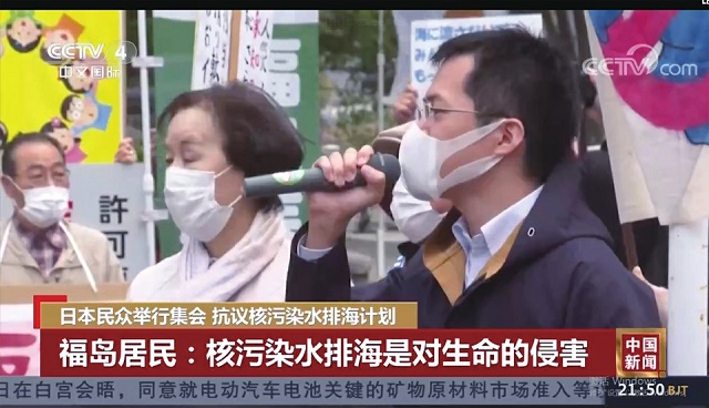 抗議集會上,“311甲狀腺癌兒童支援網(wǎng)絡”成員岡田俊子介紹了《核污染水排放入海的爭論點——氚的危險性》一書。該書作者之一渡邊悅司是福島核泄漏事故的受害者,去年2月因癌癥去世,堅決反對核污染水排放入海是她的遺愿。書中介紹了核污染水對人體的影響,并指出福島核事故后,當?shù)刂辽僖延?00多名兒童確診甲狀腺癌。
