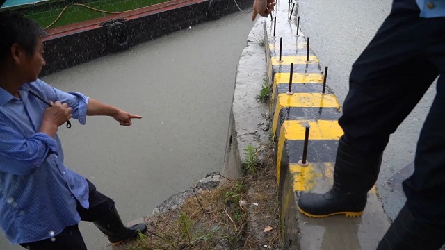 隨后,檢查工作的另一站是馬陸鎮(zhèn)某廢舊金屬回收公司。 “公司現(xiàn)場管理粗放,回收的廢舊金屬露天堆放,可能導(dǎo)致廢品中的油污隨雨水沖刷流入河道。”執(zhí)法隊員介紹早前這家企業(yè)存在的問題。這家公司曾被發(fā)現(xiàn)過雨水違規(guī)外排現(xiàn)象。當(dāng)時也是一個大雨天氣,公司工人發(fā)現(xiàn)由于廢水處理設(shè)施進水泵停運,導(dǎo)致周邊排水溝積水現(xiàn)象嚴(yán)重,工人就打開雨水截止閥向蕰藻浜排放積水。對此,區(qū)生態(tài)環(huán)境局執(zhí)法大隊立即責(zé)令企業(yè)整改,重新維修進水泵,并按要求將初期雨水進行收集處理,后期再將處理后的雨水達標(biāo)排放。