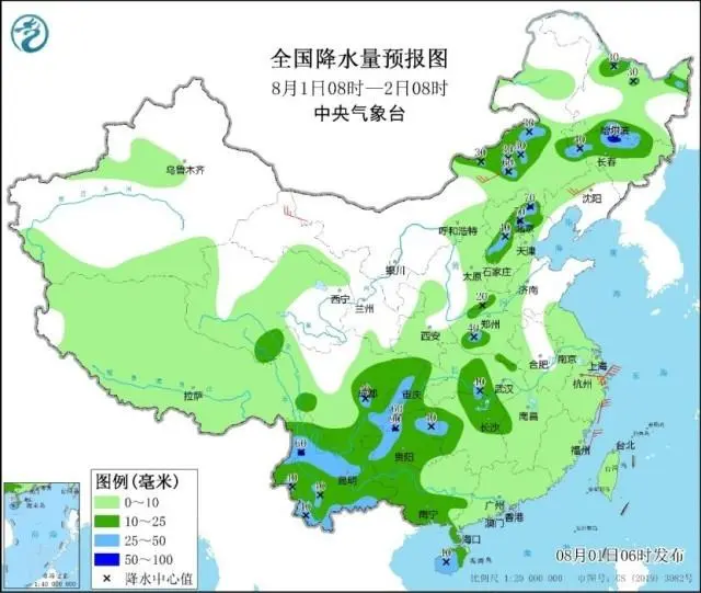 中央氣象臺預(yù)計,8月1日夜間開始至4日,內(nèi)蒙古東部、東北地區(qū)多陣雨或雷陣雨天氣,其中內(nèi)蒙古東北部、吉林中東部、黑龍江東南部等地部分地區(qū)有大到暴雨,局地有大暴雨;上述部分地區(qū)伴有短時強(qiáng)降水,局地將有雷暴大風(fēng)或冰雹天氣。