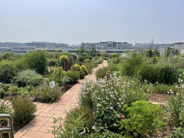 記者在園區(qū)看到,不僅花園、下凹式綠地能“吸水”,寫(xiě)字樓的屋頂也是大“海綿”,不少企業(yè)在屋頂栽種了綠植,一家幼兒園還將屋頂改造成花園、菜園,孩子們多了親近大自然的空間,下雨天綠色的屋頂還能起到收納雨水的作用。