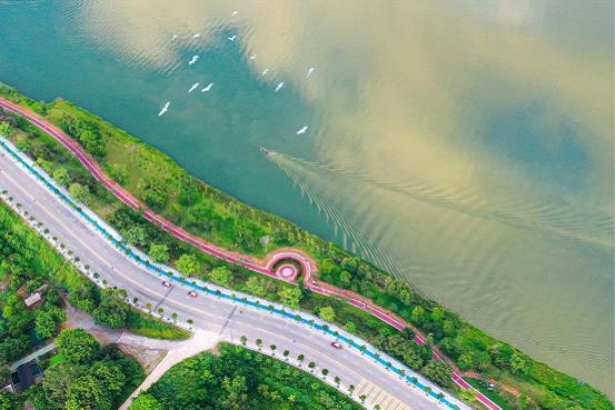 蕉門河依托原生植物體系與碧道系統,利用植物、濕地、園路、構筑物等打造了公園景觀系統,為周邊社區提供休閑綠道、游樂園和雨水花園,成功打造都市型高標準休閑觀光風情帶,完成了從城市傷疤到城市客廳的完美蛻變。