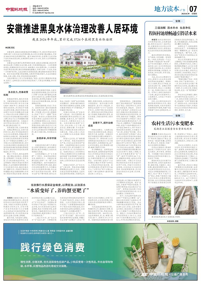 安徽省委、省政府高度重視農(nóng)村環(huán)境整治工作,將農(nóng)村黑臭水體作為群眾家門口的突出生態(tài)環(huán)境問題,納入民生實(shí)事強(qiáng)力推動(dòng)整治,并要求2026年年底全面消除黑臭。截至2024年年底,全省累計(jì)完成3724個(gè)農(nóng)村黑臭水體治理,治理面積約2070萬平方米,農(nóng)村人居環(huán)境得到有效改善。