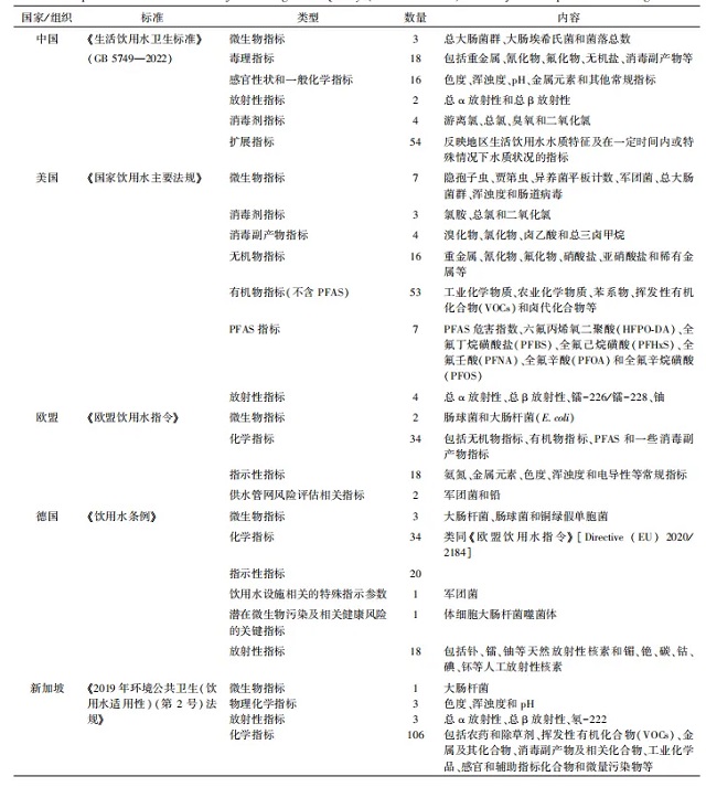 表4中國《生活飲用水衛生標準》(GB5749—2022)與主要發達國家/組織的對比