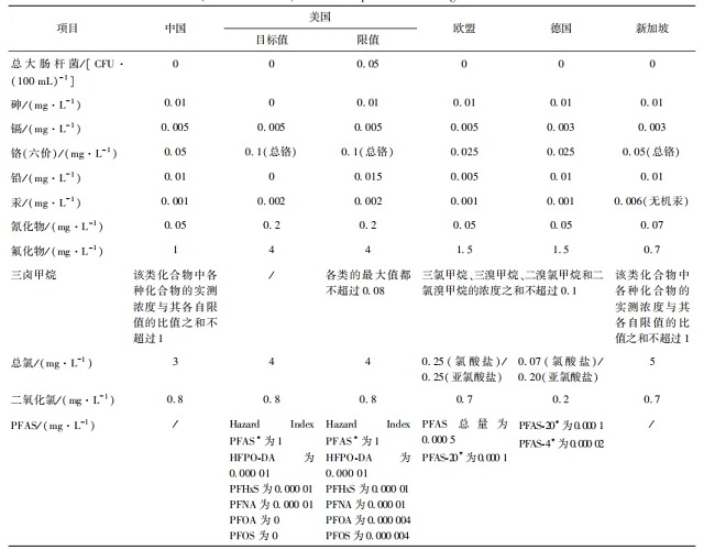 注:?表示美國標準中一種基于健康風險的水質目標值,是理論上的“無風險”濃度水平,對所有人群(包括敏感人群,如兒童和免疫力低下者)都沒有已知或預期的健康風險;HazardIndexPFAS表示美國標準中20種PFAS化學物質的集合;PFAS-4是指包括PFOA、PFNA、PFHxS和PFOS等4種PFAS化學物質的集合。