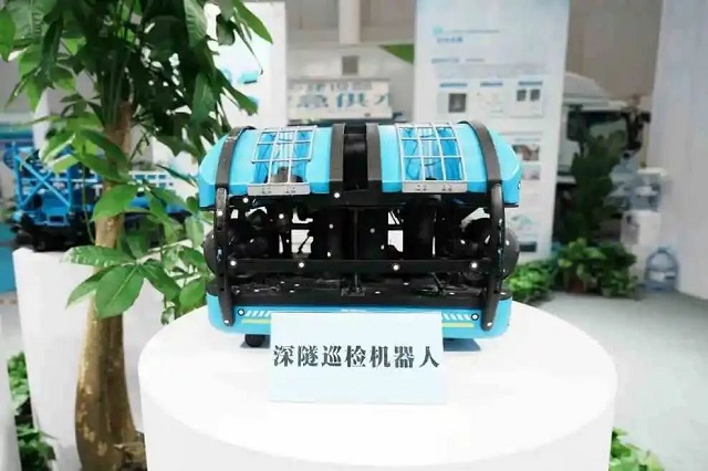中建三局綠投公司參展的深隧巡檢機(jī)器人已應(yīng)用于武漢大東湖深隧工程,能夠在高水位、多障礙物等復(fù)雜環(huán)境下,實(shí)現(xiàn)準(zhǔn)確定向、定位、懸停等操作,最大工作水深100米,最長檢測距離4.5公里,最大抗流能力1.2米每秒,創(chuàng)新集成聲、光、電磁三位一體檢測系統(tǒng),對隧道內(nèi)部厘米級(jí)厚度淤積和毫米級(jí)結(jié)構(gòu)表面損傷進(jìn)行檢測,檢測精度達(dá)90%以上,保障深隧安全穩(wěn)定運(yùn)營