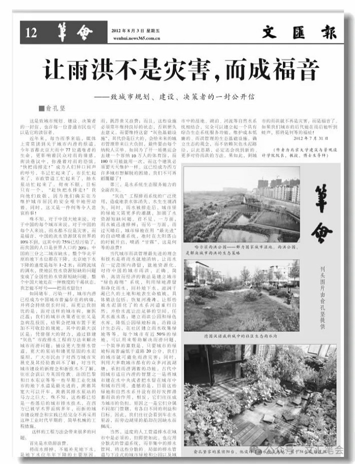 【逝者】俞孔堅(jiān):讓雨洪不是災(zāi)害,而成福音——致城市規(guī)劃、建設(shè)、決策者的一封公開信