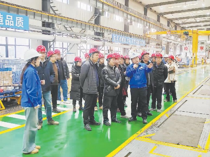 圖為項目組研發(fā)骨干和跟蹤指導(dǎo)專家組考察地下水循環(huán)井一體化設(shè)備柔性生產(chǎn)線。